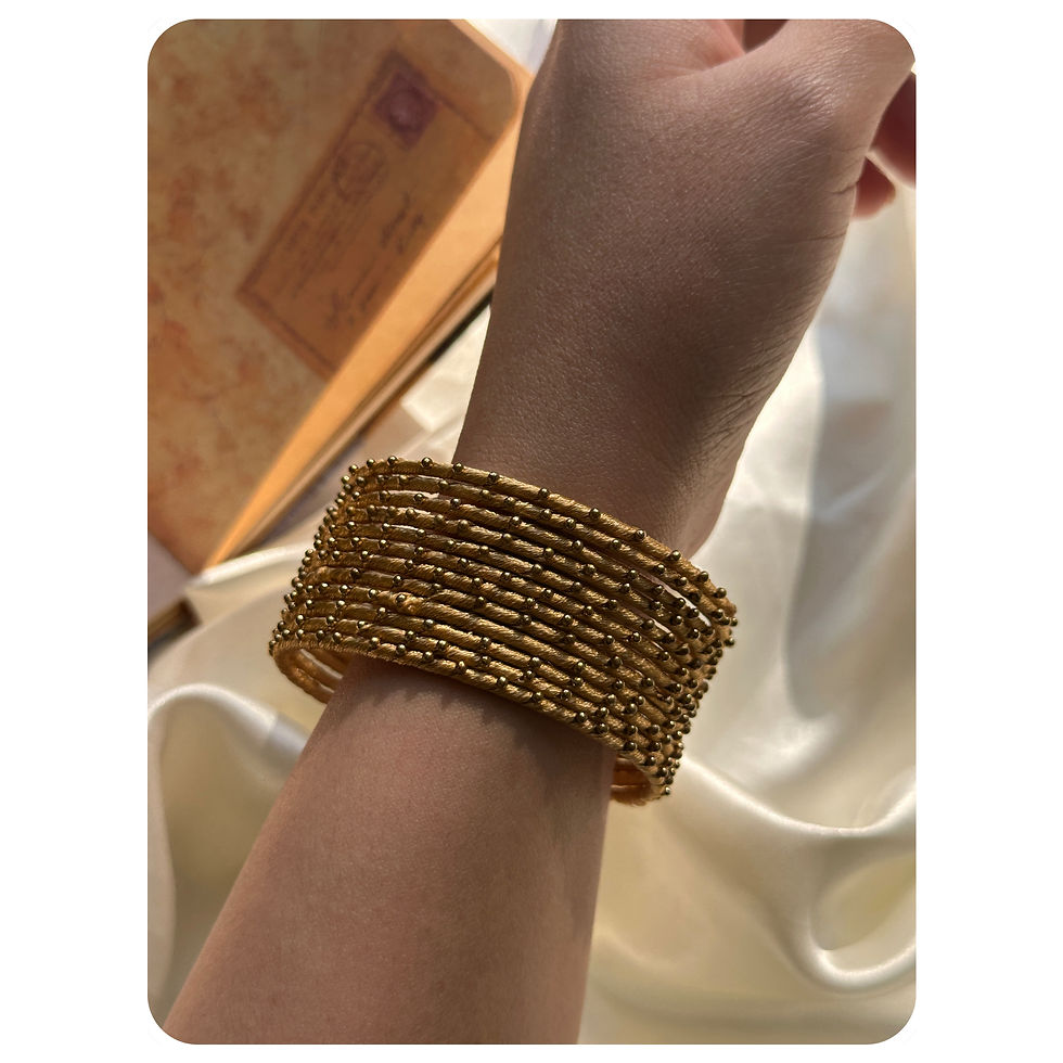 Golden Thread and Gold Beaded Bangle Set (12 pieces) Size- 2.6