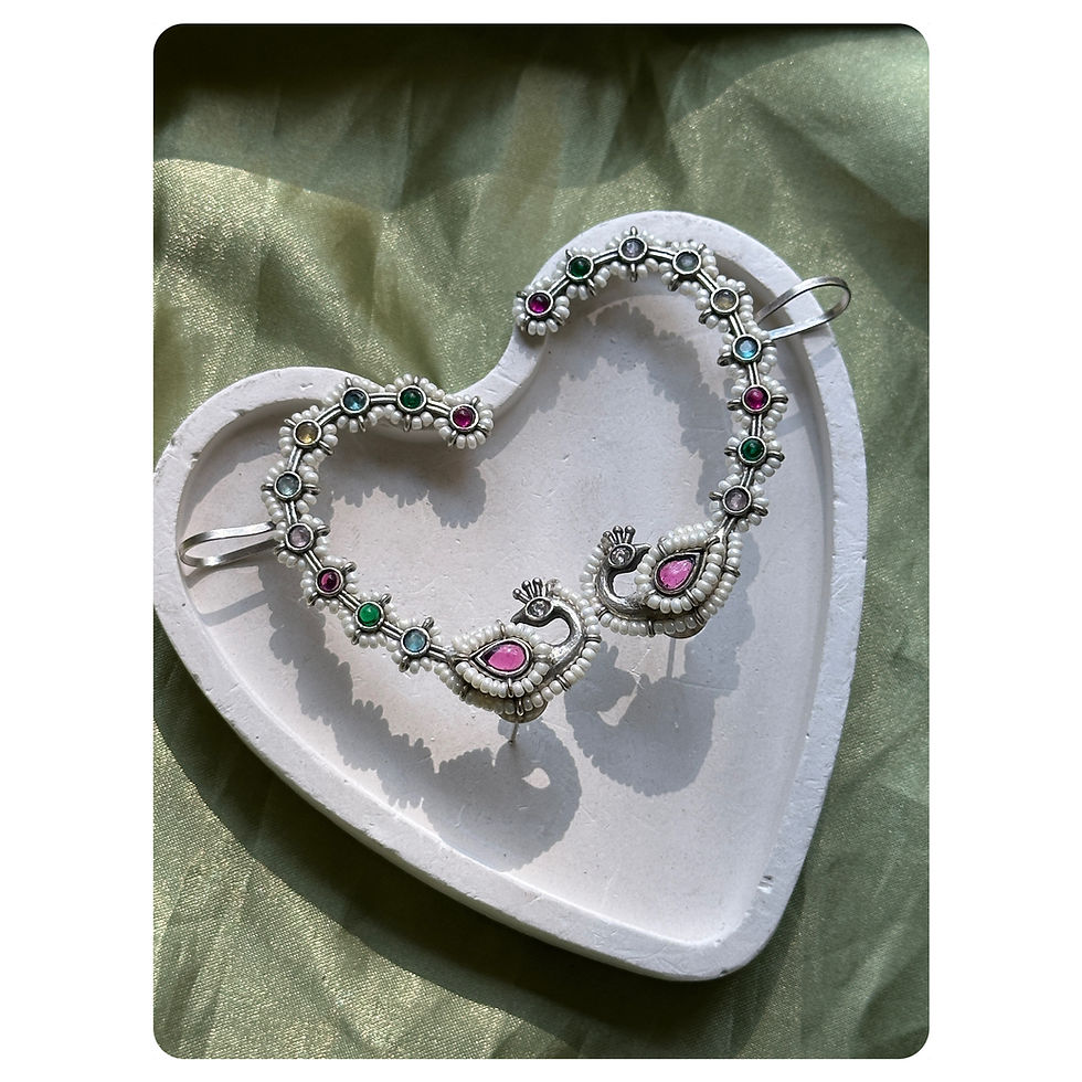 Silver Oxidised Peacock Motif Beadwork Earcuff